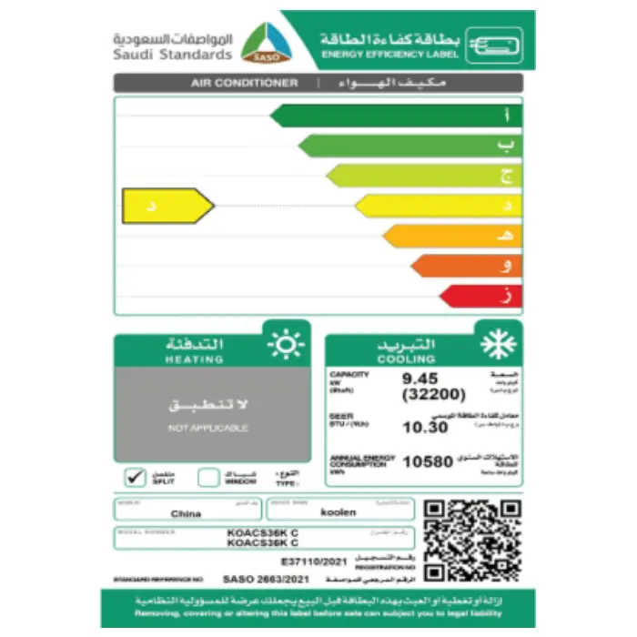 مكيف اسبليت كولن 32200 وحدة – بارد koacs36k c