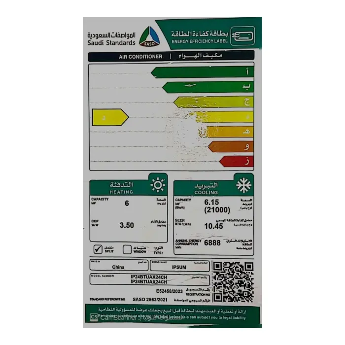 مكيف سبلت ابسوم 21000 وحدة – حار / بارد IP24BTUAX24CH
