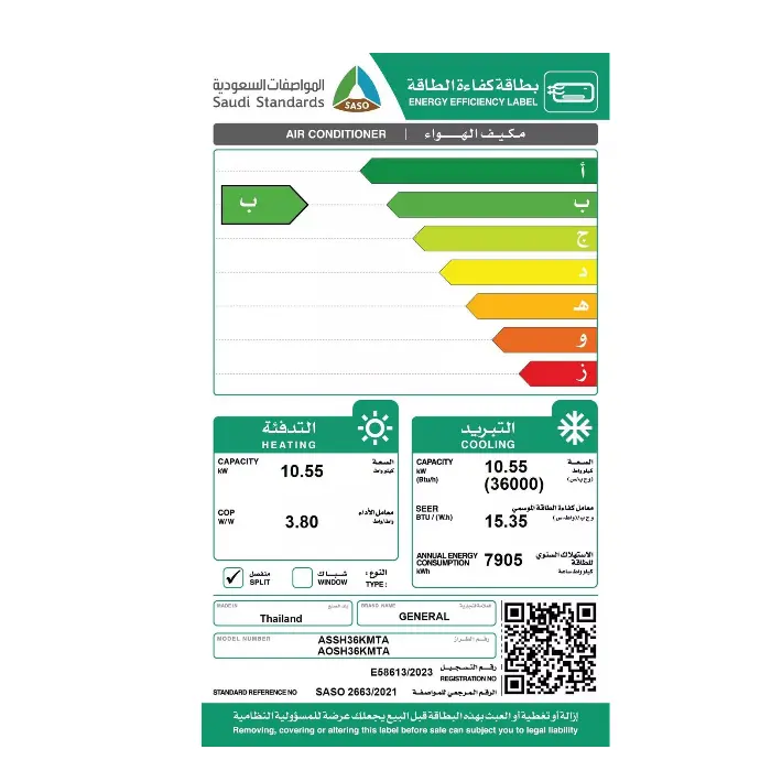 | الصنف | مكيف اوجنرال سبليت 36000 وحدة انفيرتر – حار / بارد – أبيض |