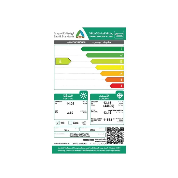 مكيف جري دولابي 44800 وحدة انفرتر – حار/بارد GVH48ALXL-D3DTC7A/I