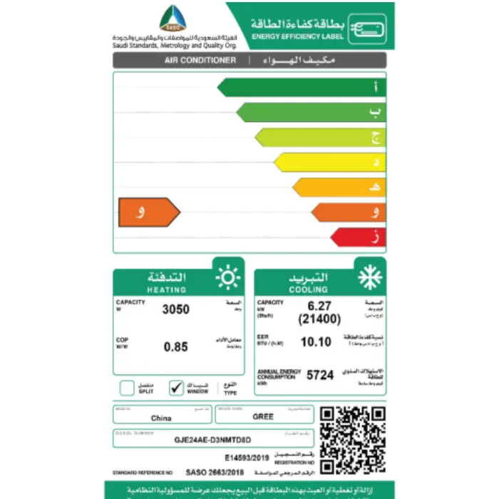 مكيف جري 21400 وحدة شباك – حار / بارد GJE24AE-D3NMTG1D