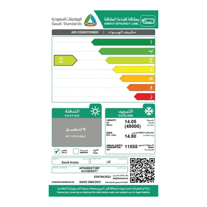 إل جي معروفة بتقنياتها في كفاءة استهلاك الطاقة. مكيف سبليت دولابي مصمم ليعمل بأقصى كفاءة مع أقل استهلاك ممكن للطاقة، مما يساهم في تقليل فواتير الكهرباء.