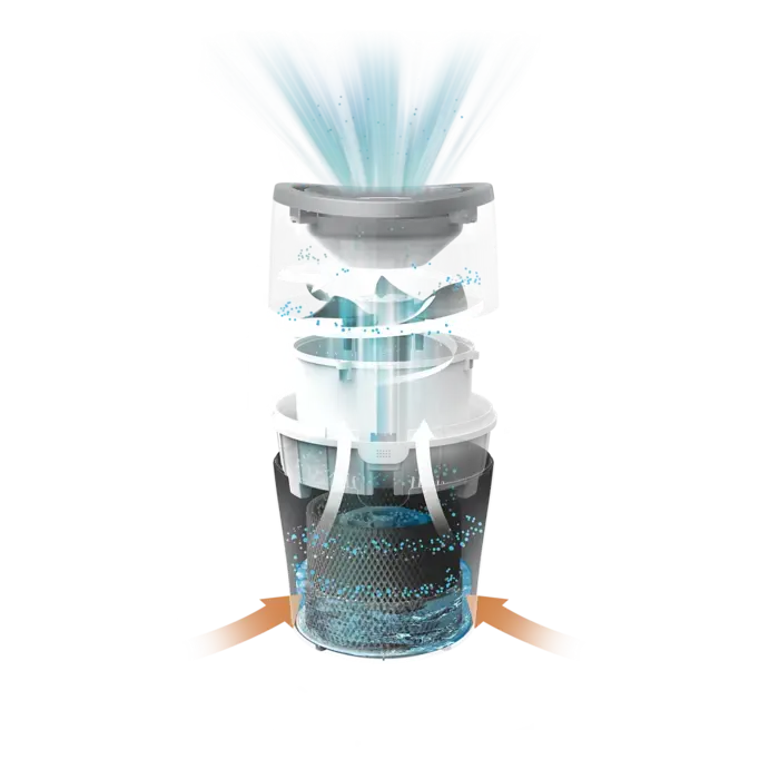 - فلتر هواء مزدوج يأتي مزودًا بفلتر HEPA مزدوج يعمل على تنقية الهواء من الغبار والجزيئات الضارة